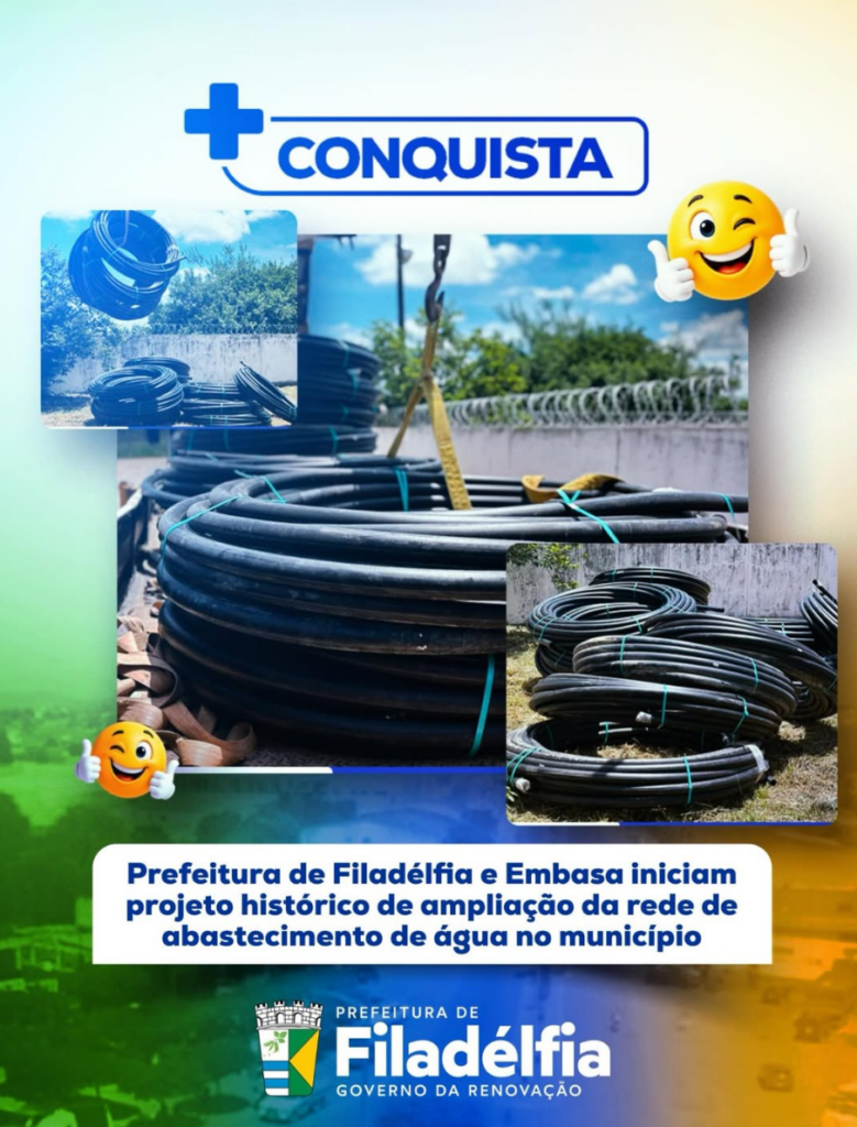 A Prefeitura de Filadélfia, no norte da Bahia, anunciou o início de um novo projeto de ampliação da rede de abastecimento de água no município. A iniciativa está sendo realizada em parceria com a Empresa Baiana de Águas e Saneamento (Embasa) e tem como objetivo fortalecer a infraestrutura hídrica da cidade, garantindo mais acesso à água para as famílias. De acordo com a gestão municipal, o projeto representa um avanço importante para o desenvolvimento urbano e para a melhoria das condições de vida da população, especialmente em áreas que necessitam de reforço no sistema de distribuição. Em publicação nas redes sociais, a administração destacou a relevância da iniciativa para o município. “Mais uma conquista para Filadélfia! A Prefeitura de Filadélfia, em parceria com a Embasa, inicia um importante projeto de ampliação da rede de abastecimento de água no município”, afirmou a gestão. Ainda segundo a prefeitura, a ação deve contribuir diretamente para ampliar o atendimento e garantir maior segurança hídrica para os moradores. “Essa ação representa mais qualidade de vida, desenvolvimento e mais água chegando para as famílias da nossa cidade”, destacou a publicação. A gestão também reforçou que o projeto faz parte de um conjunto de investimentos voltados para a melhoria da infraestrutura urbana e para o fortalecimento dos serviços essenciais oferecidos à população. “Seguimos trabalhando com compromisso para levar melhorias e avanços para a população. É a Prefeitura de Filadélfia, Governo da Renovação, cuidando da nossa gente”, concluiu a administração municipal. A informação foi divulgada no perfil oficial da Prefeitura no Instagram.