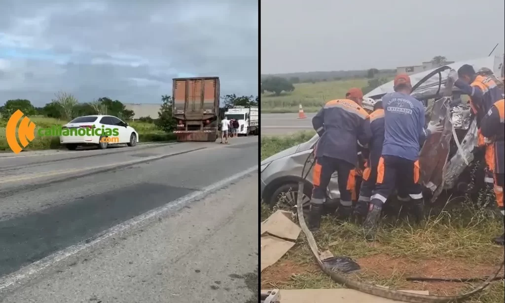 Dois homens morreram após colidirem com um caminhão no km 85 da BR-324, entre Riachão e Nova Fátima, próximo ao acesso ao distrito de Barreiros. Uma das vítimas faleceu no local e a outra morreu dentro da ambulância do SAMU.