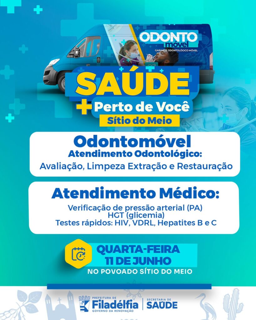 A Prefeitura de Filadélfia, por meio da Secretaria Municipal de Saúde, realiza nesta quarta-feira, 11 de junho, mais uma edição do programa Saúde + Perto