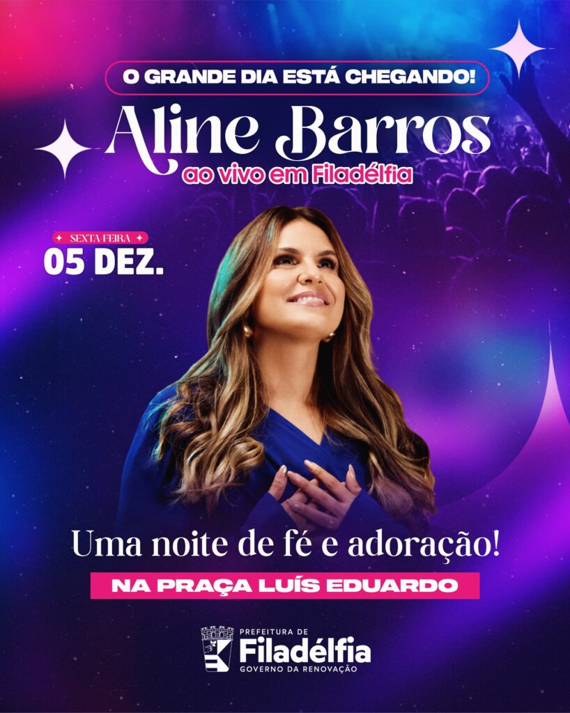 A Prefeitura de Filadélfia confirmou a realização de um dos eventos mais aguardados do calendário cultural do município: o show da cantora gospel Aline Barros,