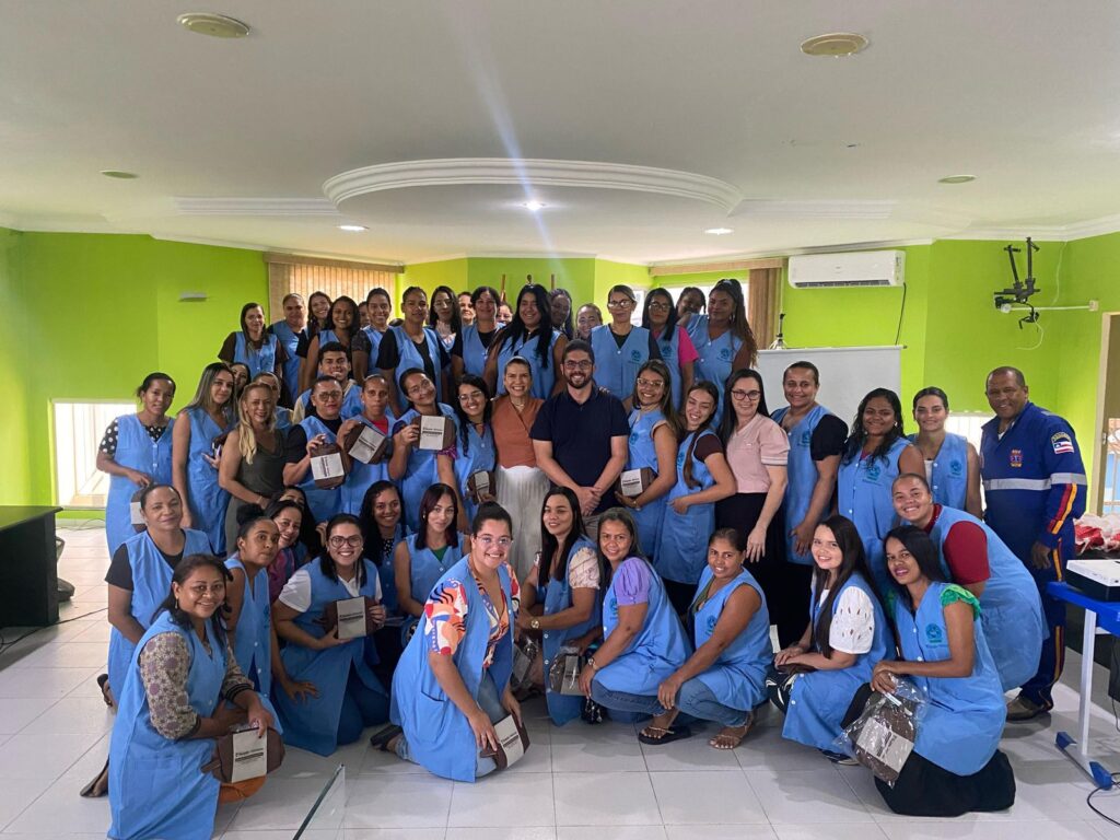 O prefeito Dr. André Maia participou do evento ao lado da secretária de Educação, Jamile, destacando a importância da formação contínua e do cuidado com a vida. Na ocasião, o prefeito e a secretária entregaram aos cuidadores o jaleco e a nécessaire (bolsinha personalizada), reforçando o compromisso da gestão com a valorização e o reconhecimento desses profissionais.