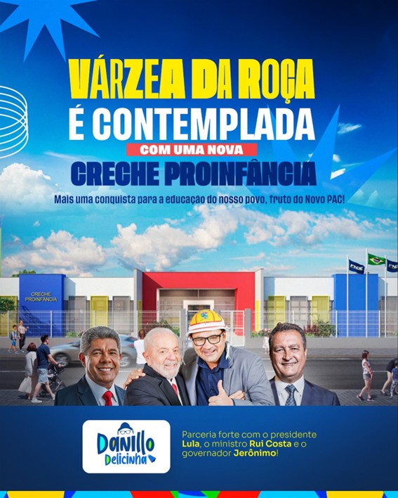 A cidade de Várzea da Roça, no interior da Bahia, foi contemplada com uma importante conquista para a área da educação infantil. O prefeito Danillo Sales anunciou, por meio de suas redes sociais, a chegada de uma nova unidade da Creche Proinfância, fruto do Novo Programa de Aceleração do Crescimento (PAC), do Governo Federal.