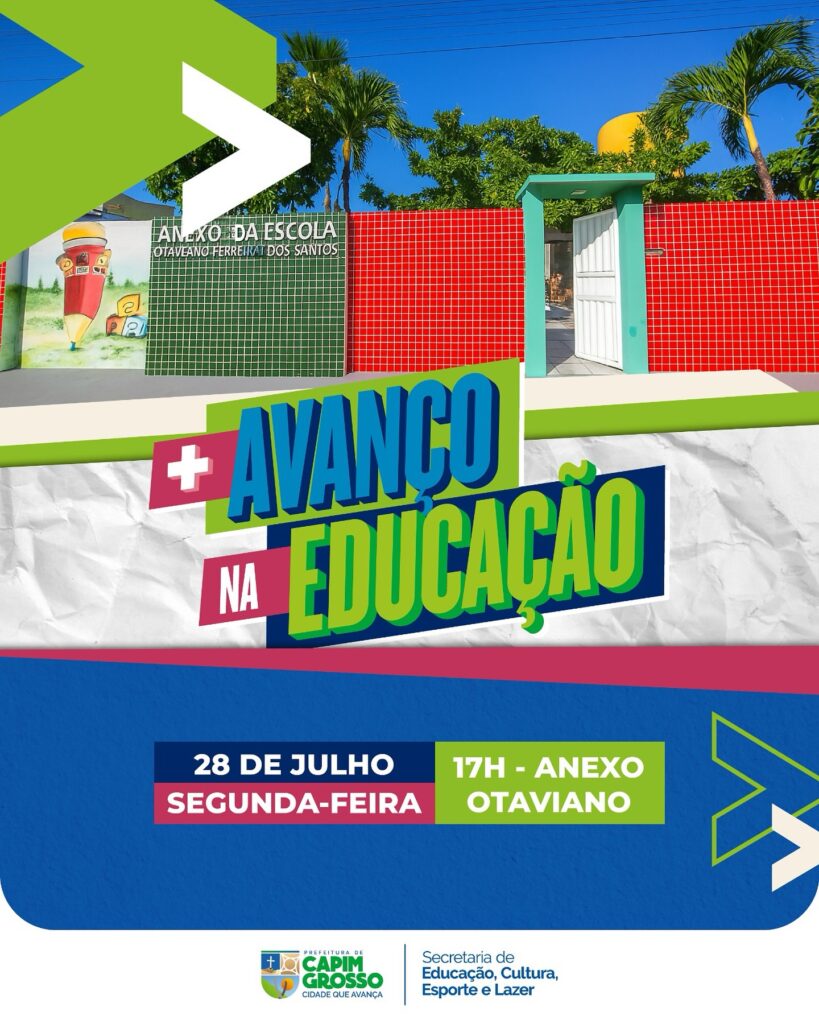 “Mais um avanço na educação de Capim Grosso!”, destacou a prefeitura em publicação oficial, que também celebra a proposta como parte da missão de garantir uma “educação que transforma, cidade que avança”.