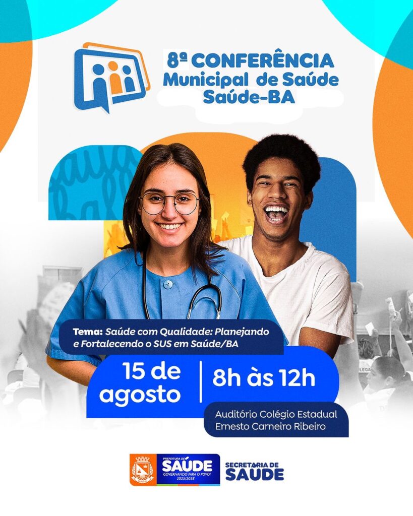 O encontro será realizado no dia 15 de agosto, a partir das 8h, no Auditório do Colégio Ernesto Carneiro Ribeiro. De acordo com a gestão municipal, trata-se de “um momento de diálogo e construção coletiva para fortalecer as políticas públicas de saúde do nosso município”.