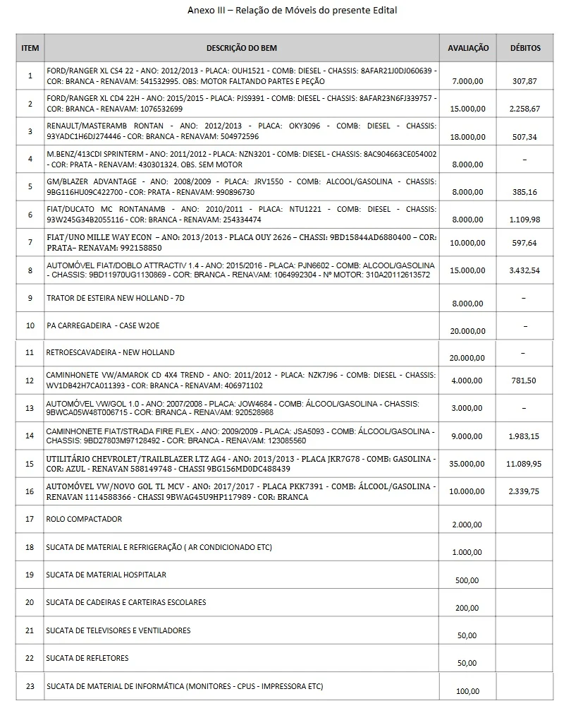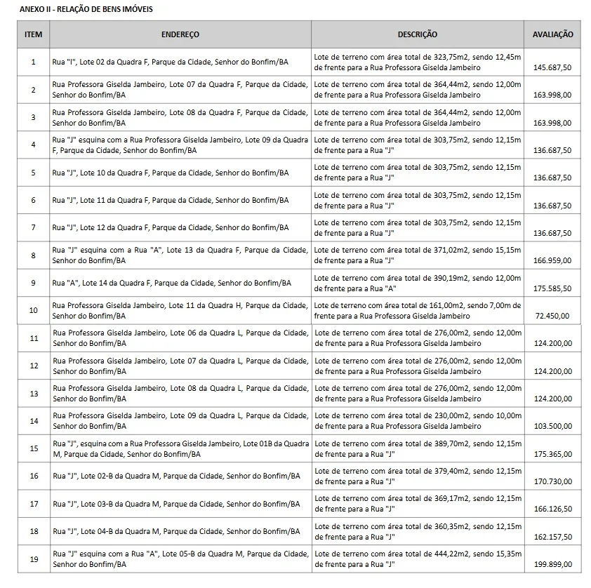 A PREFEITURA MUNICIPAL DE SENHOR DO BONFIM – BAHIA, torna público que no dia 25 de agosto de 2025, às 10:00 horas, realizará  a  sessão  pública  do  LEILÃO  SIMULTÂNEO  ELETRÔNICO  E  PRESENCIAL  nº  001/2025,  Processo Administrativo nº  294/2024,  online  pelo  site www.kildareleiloes.com.br,  e,  presencial,  de  forma  simultânea,  conforme, endereço,  do  parágrafo  seguinte,  do tipo  MAIOR  LANCE,  por  intermédio  de  LEILOEIRO  OFICIAL contratado, o Sr. Josecelli Kildare Fraga Gomes, matriculado na Junta Comercial do Estado da Bahia nº 11/023537 -1, para ALIENAÇÃO DE 19 (DEZENOVE) IMÓVEIS TIPO LOTE URBANO, de sua propriedade, no estado de conservação em que se encontra, e de veículos, bens móveis inservíveis ou antieconômicos a administração, conforme, Aviso de venda publicado no site do Leiloeiro Oficial  www.kildareleiloes.com.br e no Diário Oficial Eletrônico do Município, bem como, demais mídias exigíveis para a modalidade, que é integrante do presente Edital, na forma do Decreto 21.981 de 19/10/1932, do Decreto 22.427 de 01/02/1933, Lei Federal nº 14.133/21, e suas alterações posteriores e Lei Municipal nº 1.793-2025.